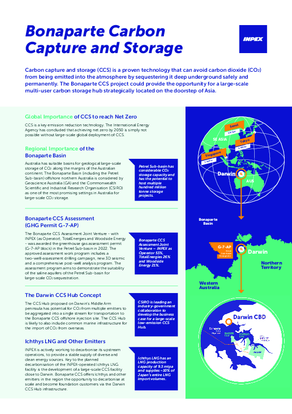 "INPEX confirms it has withdrawn its environmental referral submission for the Bonaparte Carbon Capture and Storage (CCS) Project while final amendments to the new Environment Protection and Biodiversity Conservation (EPBC) Act are being completed.